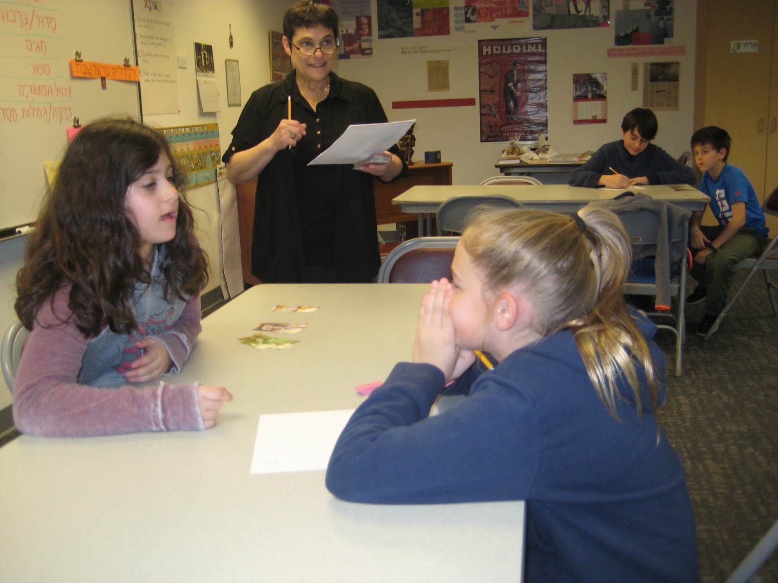 Following our HTM session, we went to t'feela and then to hafsaka (prayer service and recess). When we returned, it was time for The Shekel Game (meeschak ha'sh'kaleem), a group review game after each major unit of study that tells me if there is any important information I need to review. As it turned out, the students both on Tuesday and Wednesday showed me by their answers that they had recalled almost all of the important information I had shared with them over the past six weeks relating to the history and culture of Ashkenazi Jews, as well as what we had learned about Shabbat and about tz'daka and g'meeloot Chasadeem (see my previous post), as they were having fun betting whether they could answer a question correctly or not.